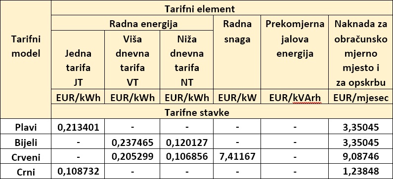 Kada se nove „mrežarine“ uključe na prethodno utvrđene tarifne stavke za energiju, a koje su stupile na snagu 01. studenog  2025. godine, te uključi i naknada za obnovljive izvore i PDV, dobiju se nove tarifne stavke koje će se primjenjivati na isporučenu električne energije kupcima od 1. siječnja 2026. godine.